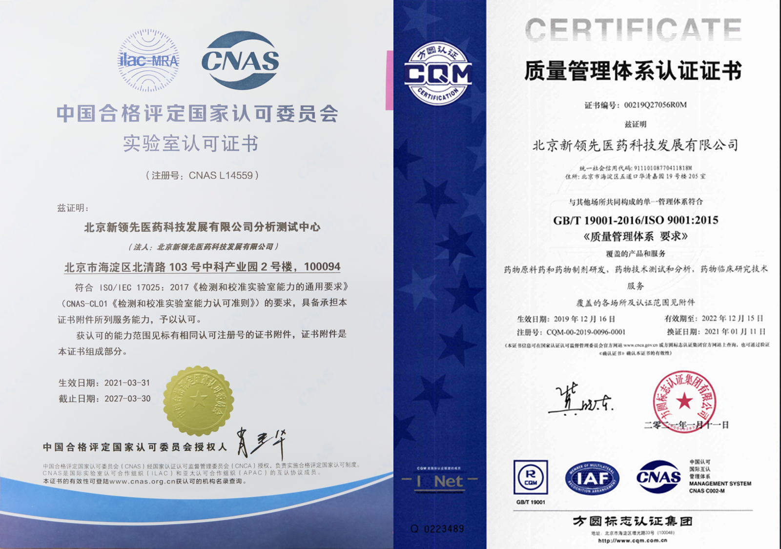 北京新領(lǐng)先醫(yī)藥科技發(fā)展有限公司分析測(cè)試中心面向國(guó)內(nèi)外藥企提供檢測(cè)技術(shù)服務(wù),積累了豐富的藥物質(zhì)量研究經(jīng)驗(yàn),主要提供痕量物質(zhì)如遺傳毒性雜質(zhì)、元素雜質(zhì)、殘留溶劑、聚合物雜質(zhì)、復(fù)雜制劑輔料剖析、藥品接觸系統(tǒng)相容性研究等符合NMPA、FDA、EMA等法規(guī)要求的研究檢測(cè)服務(wù)。本中心先后通過(guò)了ISO9001質(zhì)量管理體系認(rèn)證和中國(guó)合格評(píng)定國(guó)家認(rèn)可委員會(huì)(CNAS)實(shí)驗(yàn)室認(rèn)可資質(zhì)。