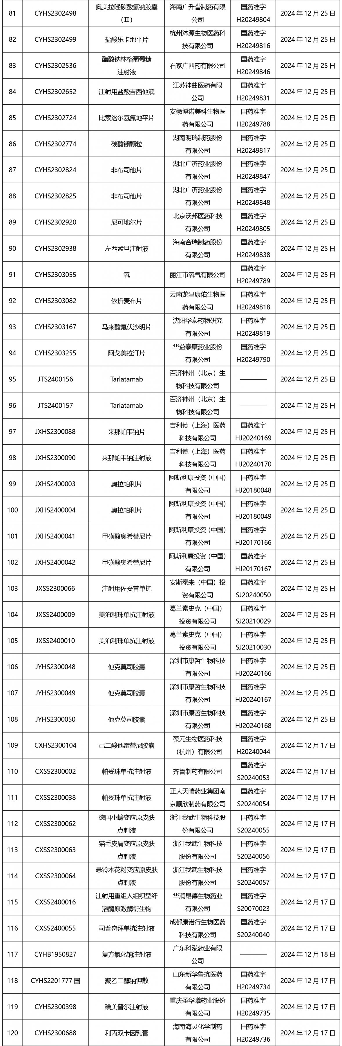 截止2025年1月3日17:00本周發(fā)布210個(gè)待領(lǐng)取藥品批準(zhǔn)證明文件,其中注射劑67個(gè),一致性評價(jià)品種9個(gè)。