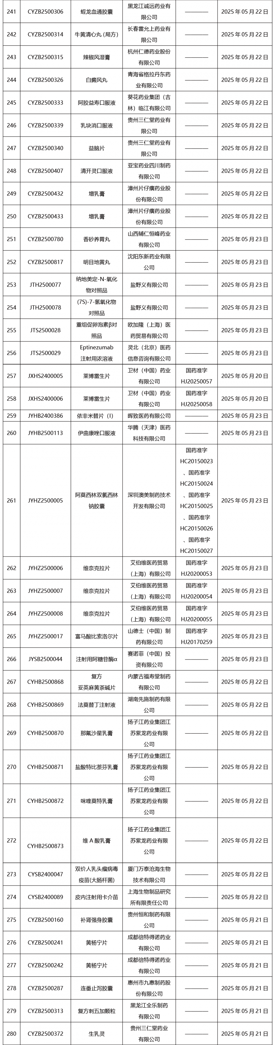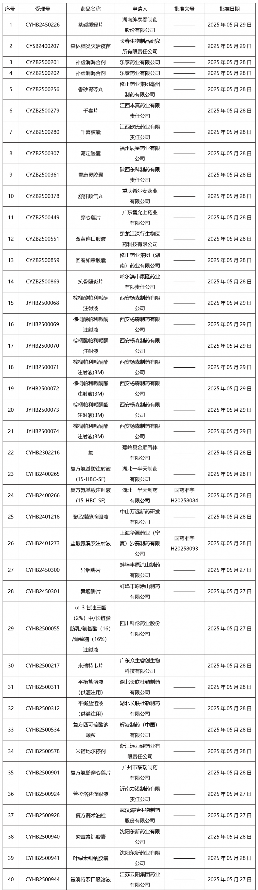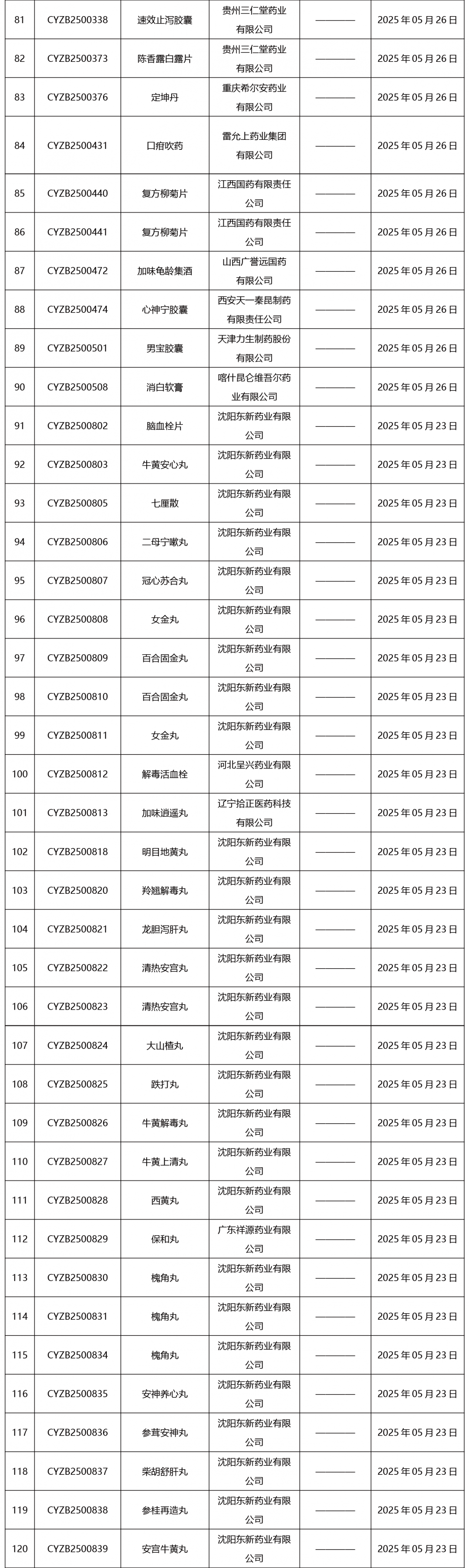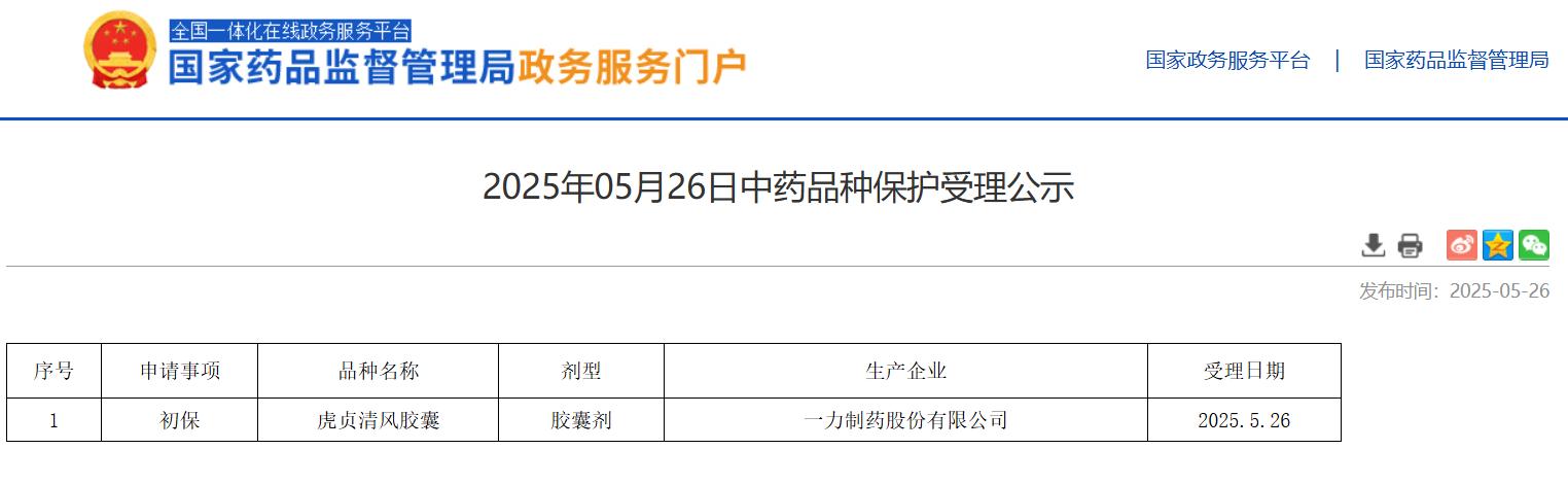 2025年05月26日中藥品種保護受理公示