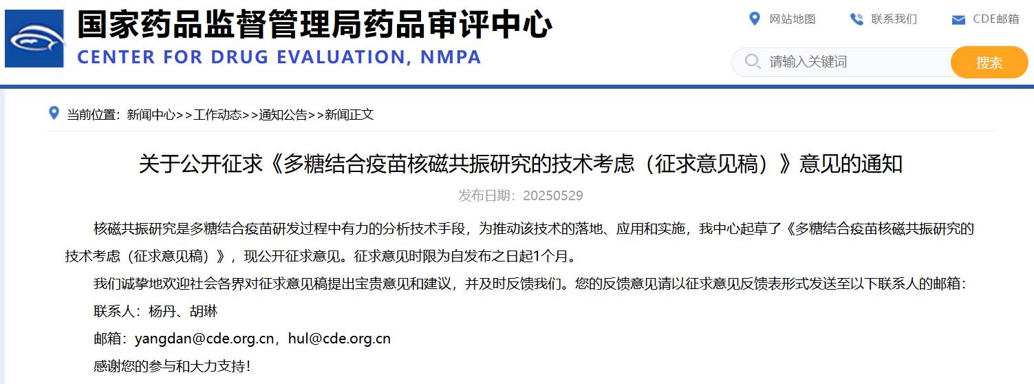 關(guān)于公開征求《多糖結(jié)合疫苗核磁共振研究的技術(shù)考慮(征求意見稿)》意見的通知