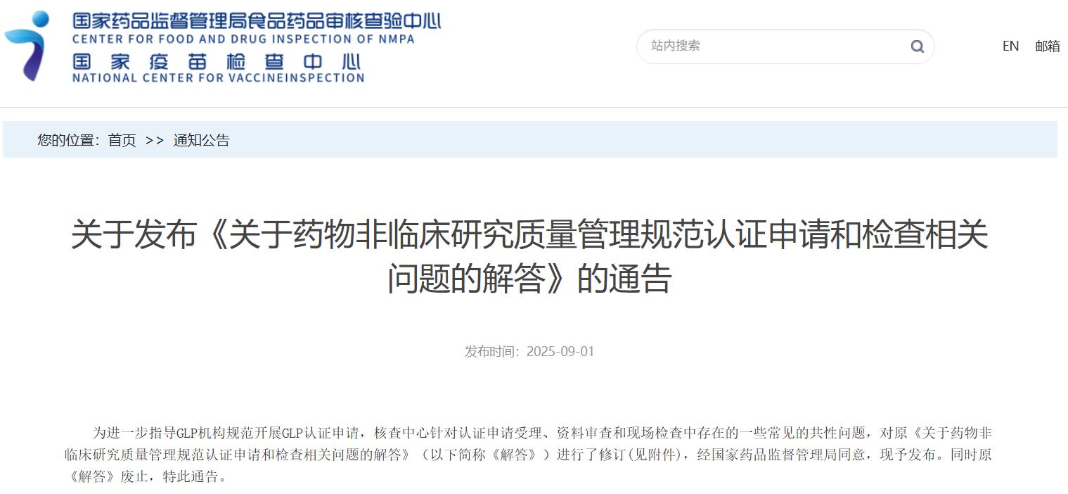 關(guān)于發(fā)布《關(guān)于藥物非臨床研究質(zhì)量管理規(guī)范認證申請和檢查相關(guān)問題的解答》的通告