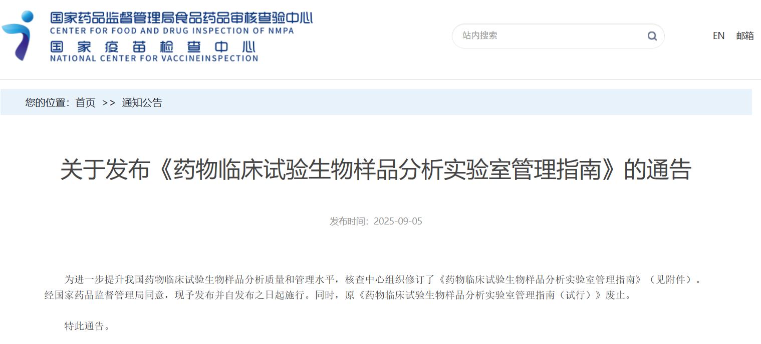 關(guān)于發(fā)布《藥物臨床試驗生物樣品分析實驗室管理指南》的通告