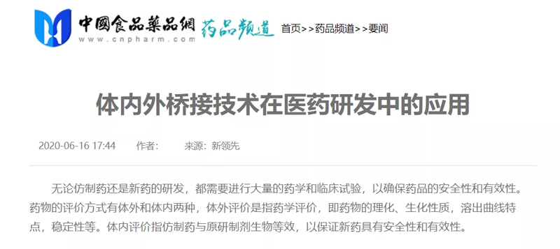 體內(nèi)外橋接旨將體外評價與體內(nèi)評價,通過建立模型,將兩者建立相關(guān)性。采用體外研究結(jié)果,通過模型,預(yù)測體內(nèi)的藥動學(xué)和藥效學(xué)參數(shù)。實現(xiàn)藥學(xué)研究與臨床試驗的對接,提高臨床試驗的成功率,縮短藥物研發(fā)時間,為制藥企業(yè)節(jié)約藥物研發(fā)成本。