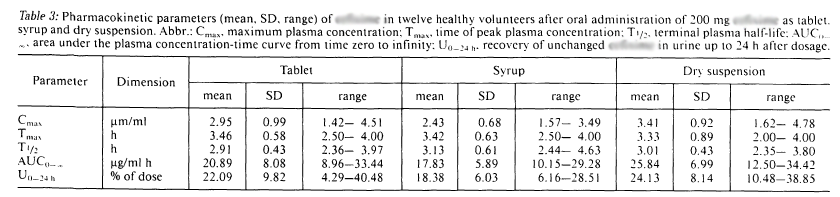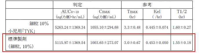藥動學數(shù)據(jù),其中紅框內的數(shù)據(jù)為細粒劑標準制劑的藥動學參數(shù):