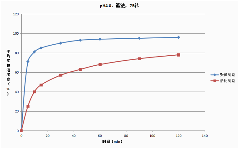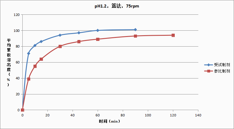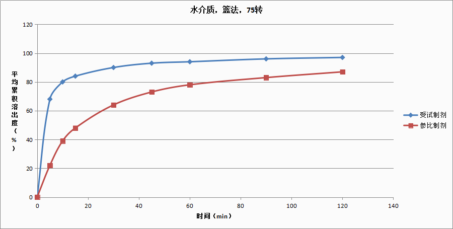 相同規(guī)格的原研細粒劑的體外溶出曲線如下: