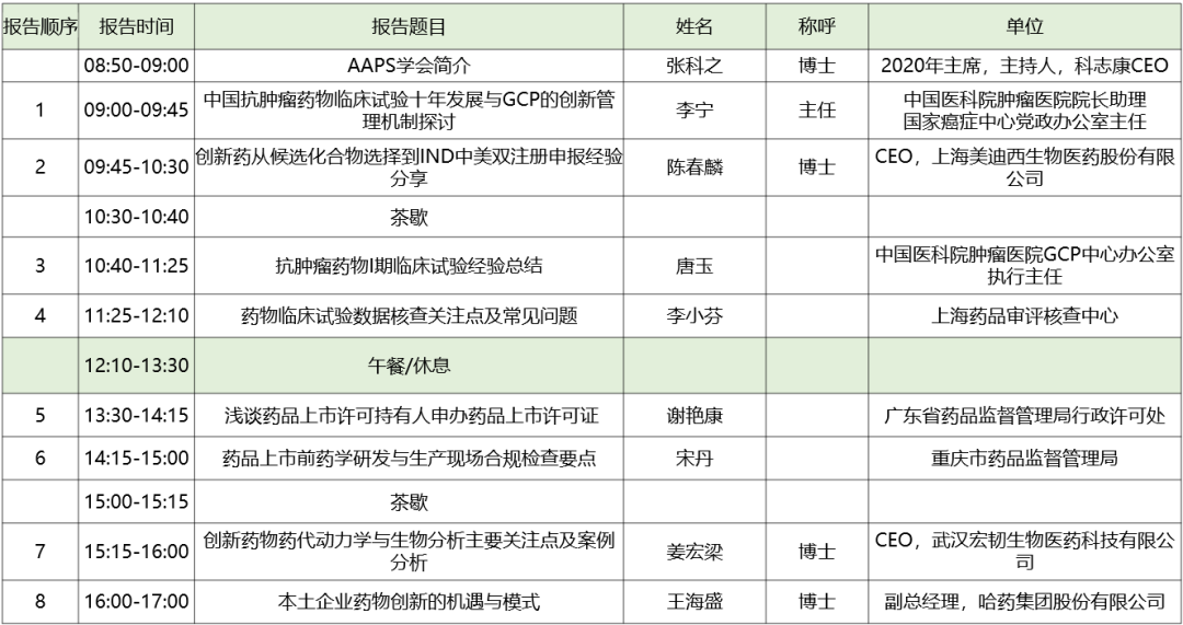 分論壇2:AAPS中國討論組2020年會暨小分子創(chuàng)新藥專題論壇