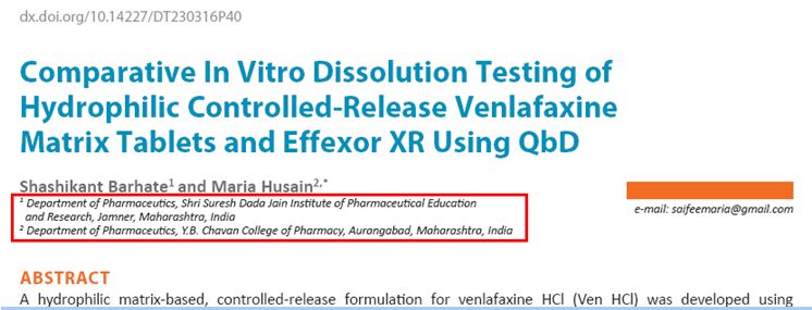 《溶出度試驗技術雜志(DissolutionTechnologies)》2016年8月,又發(fā)表了一篇由印度馬哈拉施特拉邦所屬藥學院教授和藥物研究所人員撰寫的“溶出方法的QbD:比較文拉法辛控釋片和參比制劑的溶出曲線”一文。