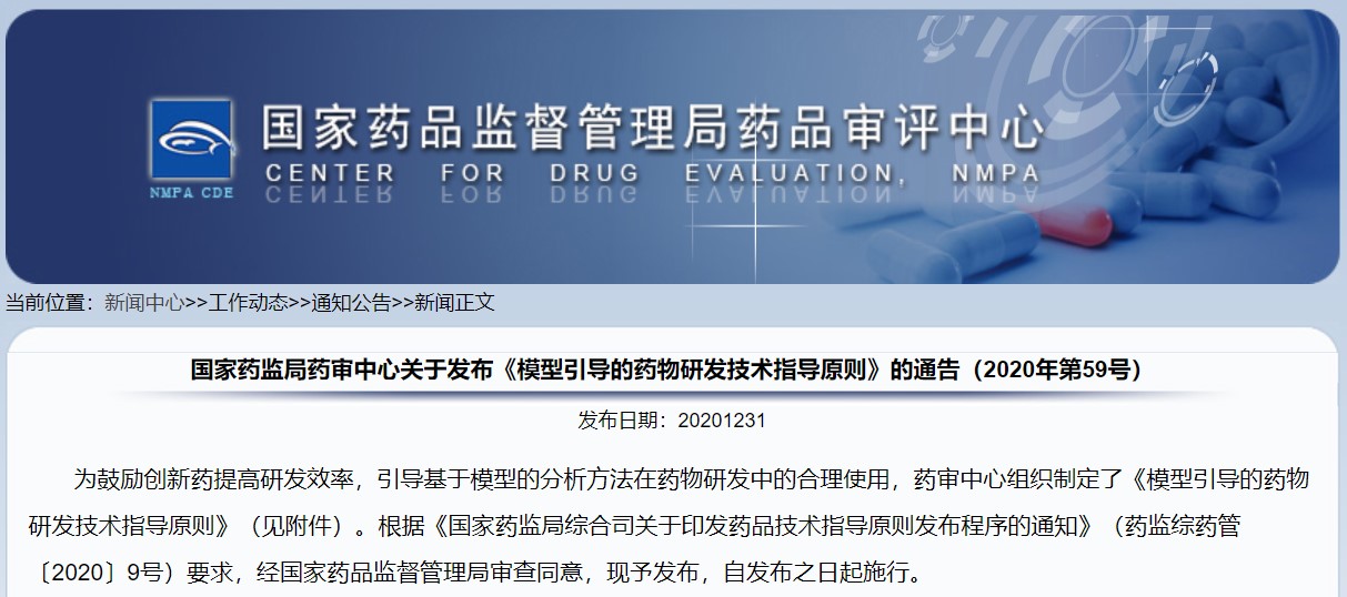 關(guān)于發(fā)布《模型引導(dǎo)的藥物研發(fā)技術(shù)指導(dǎo)原則》的通告(2020年第59號(hào))