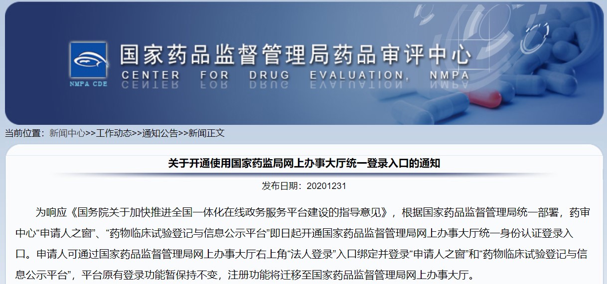 為落實(shí)《國(guó)務(wù)院辦公廳關(guān)于印發(fā)進(jìn)一步深化“互聯(lián)網(wǎng)+政務(wù)服務(wù)”推進(jìn)政務(wù)服務(wù)“一網(wǎng)、一門、一次”改革實(shí)施方案的通知》(國(guó)辦發(fā)〔2018〕45號(hào))和《國(guó)務(wù)院辦公廳關(guān)于加快推進(jìn)政務(wù)服務(wù)“跨省通辦”的指導(dǎo)意見(jiàn)》(國(guó)辦發(fā)〔2020〕35號(hào))有關(guān)要求,國(guó)家藥監(jiān)局已開(kāi)通藥品注冊(cè)事項(xiàng)網(wǎng)上申報(bào)功能,并于2021年1月1日正式上線運(yùn)行。