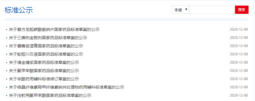 本周氨甲苯酸等9個(gè)品種國(guó)家藥品標(biāo)準(zhǔn)草案公示。