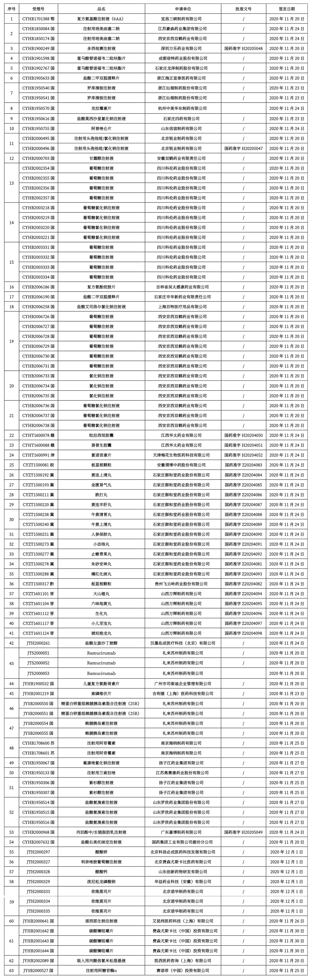 藥品注冊(cè)申請(qǐng)藥學(xué)研制和生產(chǎn)現(xiàn)場(chǎng)核查任務(wù)信息公告(2020年第19號(hào))、(2020年第20號(hào)),共計(jì)57個(gè)品種。