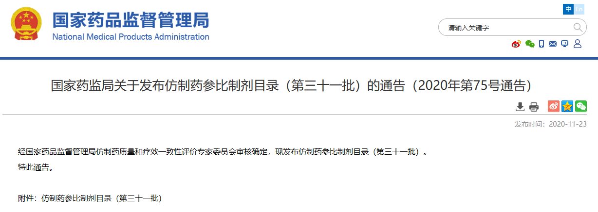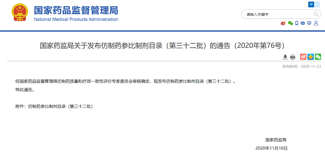 關于發(fā)布仿制藥參比制劑目錄(第三十一批)、(第三十二批)的通告