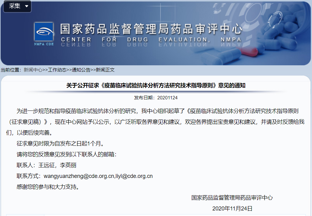 關于公開征求《疫苗臨床試驗抗體分析方法研究技術指導原則》意見的通知