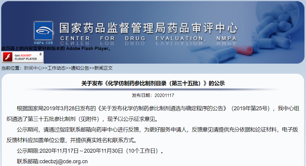 關(guān)于發(fā)布《化學(xué)仿制藥參比制劑目錄(第三十五批)》的公示(征求意見稿)