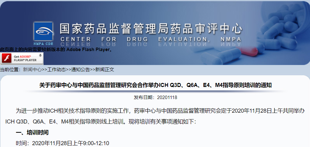 關(guān)于藥審中心與中國藥品監(jiān)督管理研究會合作舉辦ICH Q3D、Q6A、E4、M4指導(dǎo)原則培訓(xùn)的通知