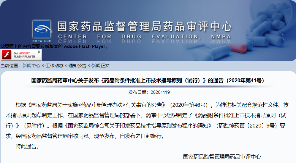 關(guān)于發(fā)布《藥品附條件批準上市技術(shù)指導(dǎo)原則(試行)》的通告(2020年第41號)