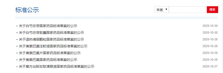 白芍總苷(膠囊)、退熱清咽顆粒、美索巴莫注射液(片)、復(fù)方谷胱甘肽滴眼液國(guó)家藥品標(biāo)準(zhǔn)草案公示。