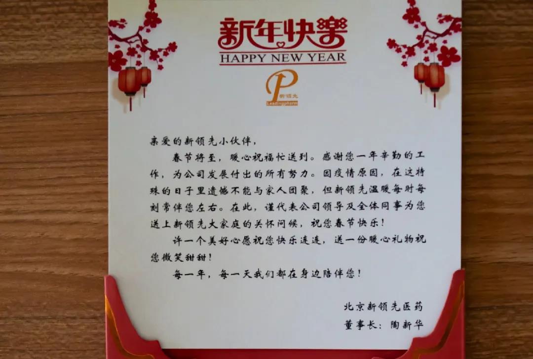 吃的飽飽的,兜里鼓鼓的,新領(lǐng)先為每位在京過年無親友陪伴的員工發(fā)放新年賀卡和價值500元的京東購物卡。