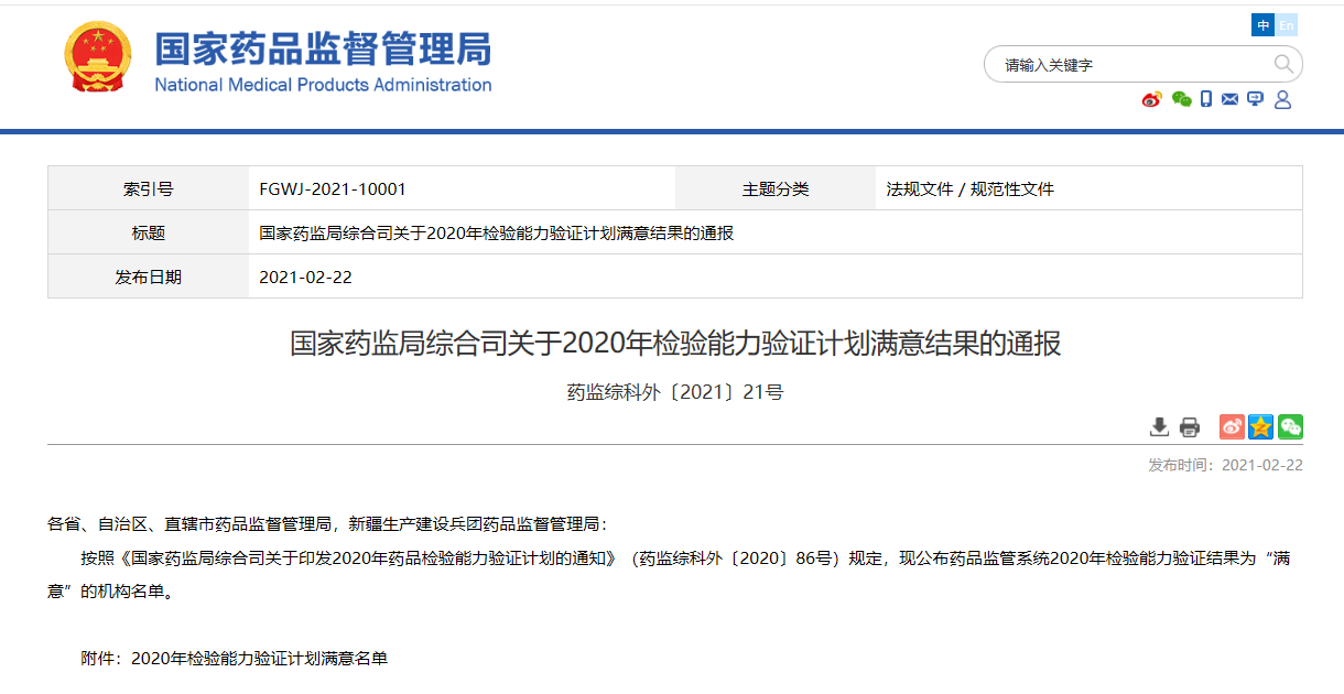 關(guān)于2020年檢驗?zāi)芰︱炞C計劃滿意結(jié)果的通報