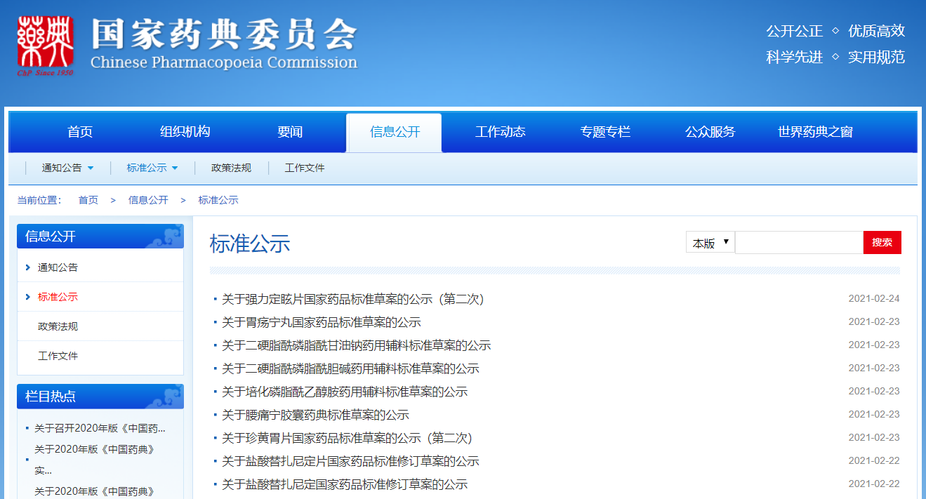 本周珍黃胃片、強力定眩片、胃瘍寧丸國家藥品標準草案的公示;腰痛寧膠囊藥典標準草案公示;培化磷脂酰乙醇胺、二硬脂酰磷脂酰膽堿、二硬脂酰磷脂酰甘油鈉藥用輔料標準草案的公示;鹽酸替扎尼定、鹽酸替扎尼定片國家藥品標準修訂草案的公示。
