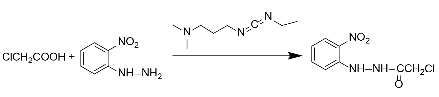 解決方案:由于醛類或酮類物質(zhì)可與苯肼反應(yīng)生成苯腙,使得在高效液相上檢測的靈敏度大大提高。我們利用類似的反應(yīng)機理,將氯乙酸與2-硝基苯肼進行柱前衍生化,以提高檢測靈敏度。但是,由于氯乙酸的羧基與苯肼反應(yīng)的活性較差,我們加入了適當(dāng)?shù)拇呋瘎闪嗽?92nm波長處有吸收的衍生物,可以用HPLC進行檢測。該方法操作簡單,且衍生物可與極性相近的藥物主成分有效分離,有效解決了氯乙酸難以檢測這一難題。