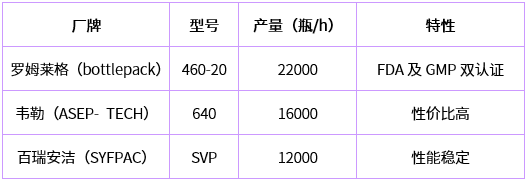 國內(nèi)生產(chǎn)BFS線的制造商主要有楚天科技、上海東富龍、上海位山等。主要型號及生產(chǎn)能力如下表所示(以2~5ml灌裝量為例):