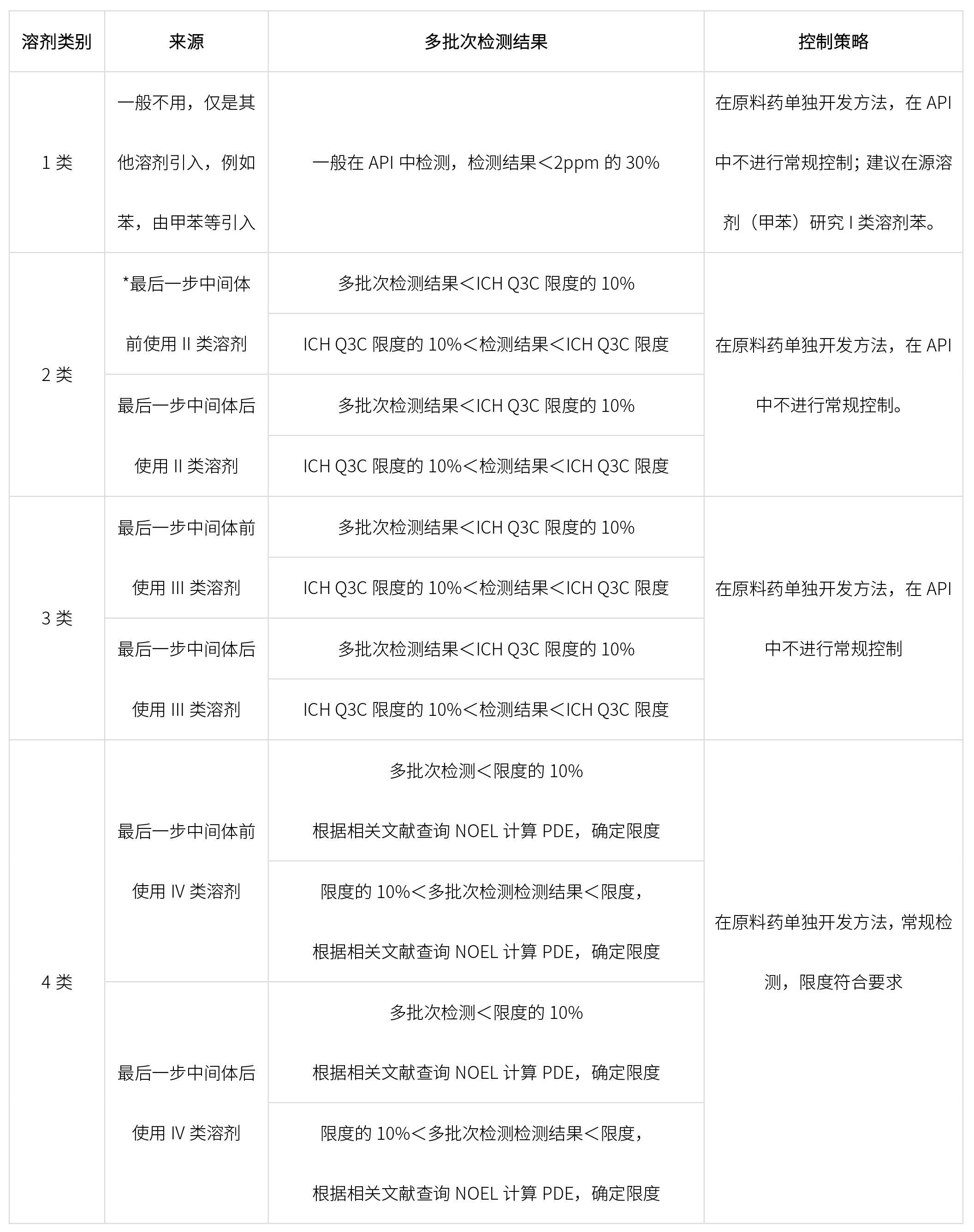 根據(jù)終產(chǎn)品合成工藝,結(jié)合ICH Q3C,確定控制策略如下: