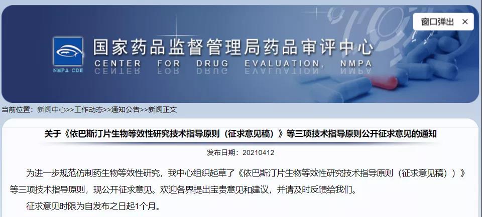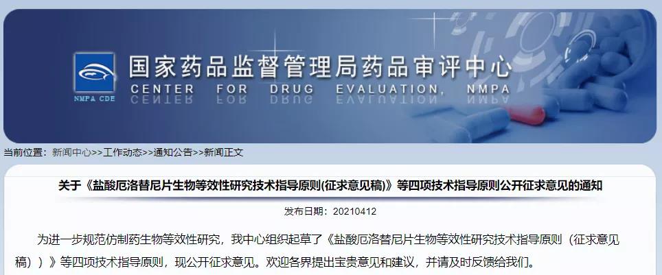 關(guān)于《依巴斯汀片生物等效性研究技術(shù)指導(dǎo)原則(征求意見(jiàn)稿)》等三項(xiàng)技術(shù)指導(dǎo)原則公開(kāi)征求意見(jiàn)的通知