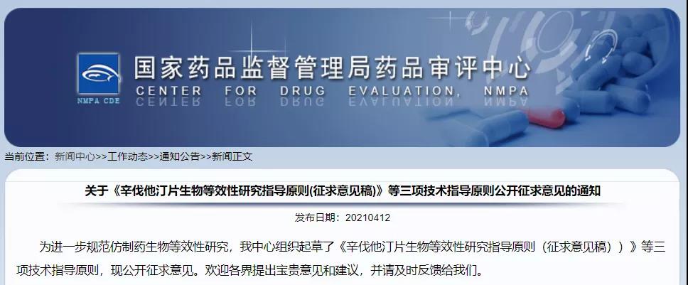 關(guān)于《辛伐他汀片生物等效性研究指導(dǎo)原則(征求意見(jiàn)稿)》等三項(xiàng)技術(shù)指導(dǎo)原則公開(kāi)征求意見(jiàn)的通知