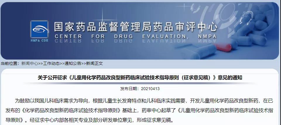 關(guān)于公開(kāi)征求《兒童用化學(xué)藥品改良型新藥臨床試驗(yàn)技術(shù)指導(dǎo)原則(征求意見(jiàn)稿)》意見(jiàn)的通知