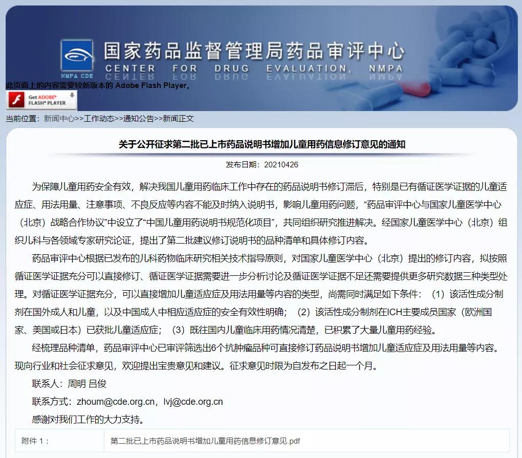 關(guān)于公開征求第二批已上市藥品說明書增加兒童用藥信息修訂意見的通知