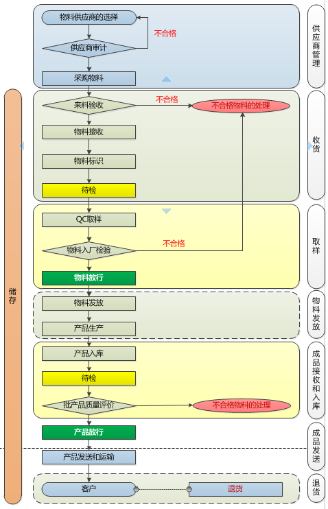 企業(yè)應建立書面的管理程序規(guī)定:區(qū)域狀態(tài)標識牌、貨位狀態(tài)標識牌的使用、存放和 管理;貨位狀態(tài)標簽和物料狀態(tài)標簽的接收、發(fā)放、使用和銷毀管理并應有記錄。質(zhì)量管理部門負責建立和實施物料和產(chǎn)品的合格標簽、不合格標簽接收、發(fā)放、使 用、銷毀管理流程,并負責決定以下質(zhì)量狀態(tài)的轉(zhuǎn)換。