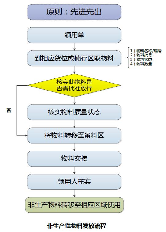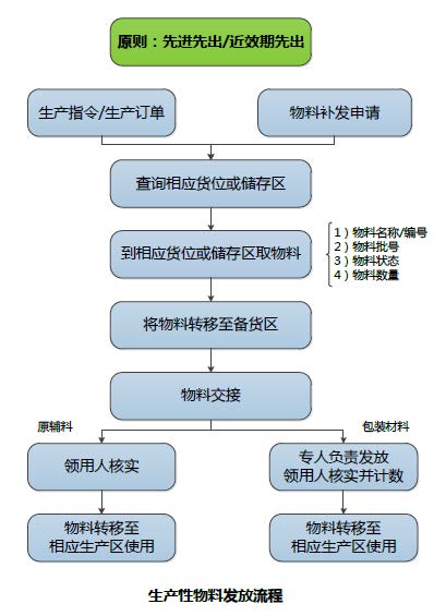 建立生產(chǎn)物料發(fā)放管理程序;物料按批發(fā)放使用;只有經(jīng)放行并有合格狀態(tài)標識的物料方可發(fā)放;根據(jù)生產(chǎn)指令和/或物料提取單核對發(fā)放物料;發(fā)放生產(chǎn)物料時應檢查物料的外包裝情況。