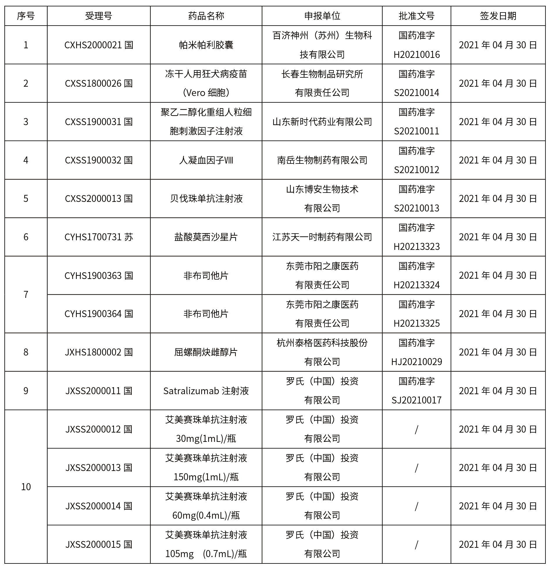 本周共計(jì)10個品種獲批取得藥品批準(zhǔn)證明文件,其中注射劑品種3個。