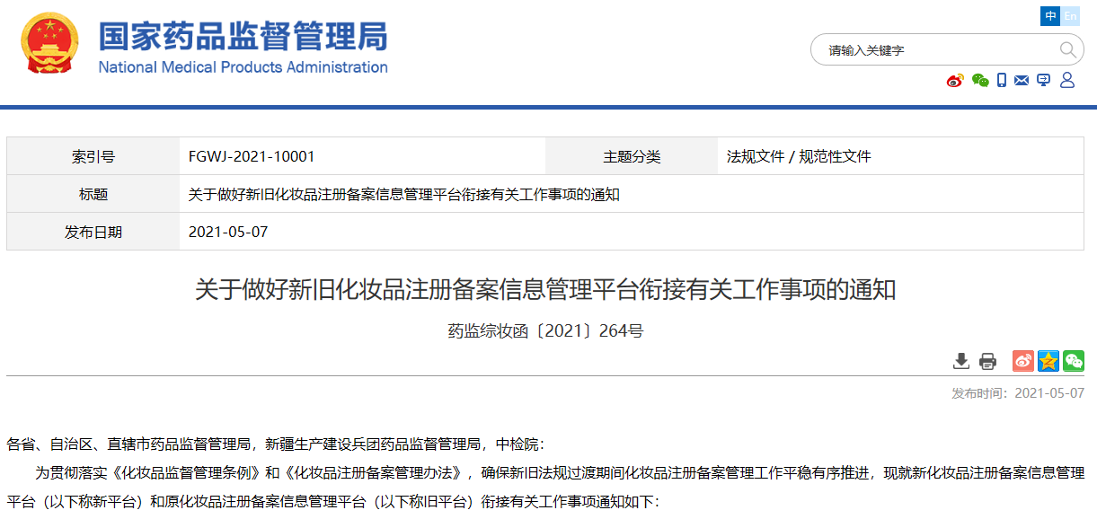 關(guān)于做好新舊化妝品注冊備案信息管理平臺銜接有關(guān)工作事項(xiàng)的通知