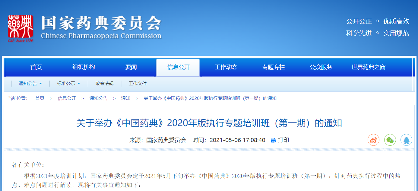 關(guān)于舉辦《中國藥典》2020年版執(zhí)行專題培訓(xùn)班(第一期)的通知