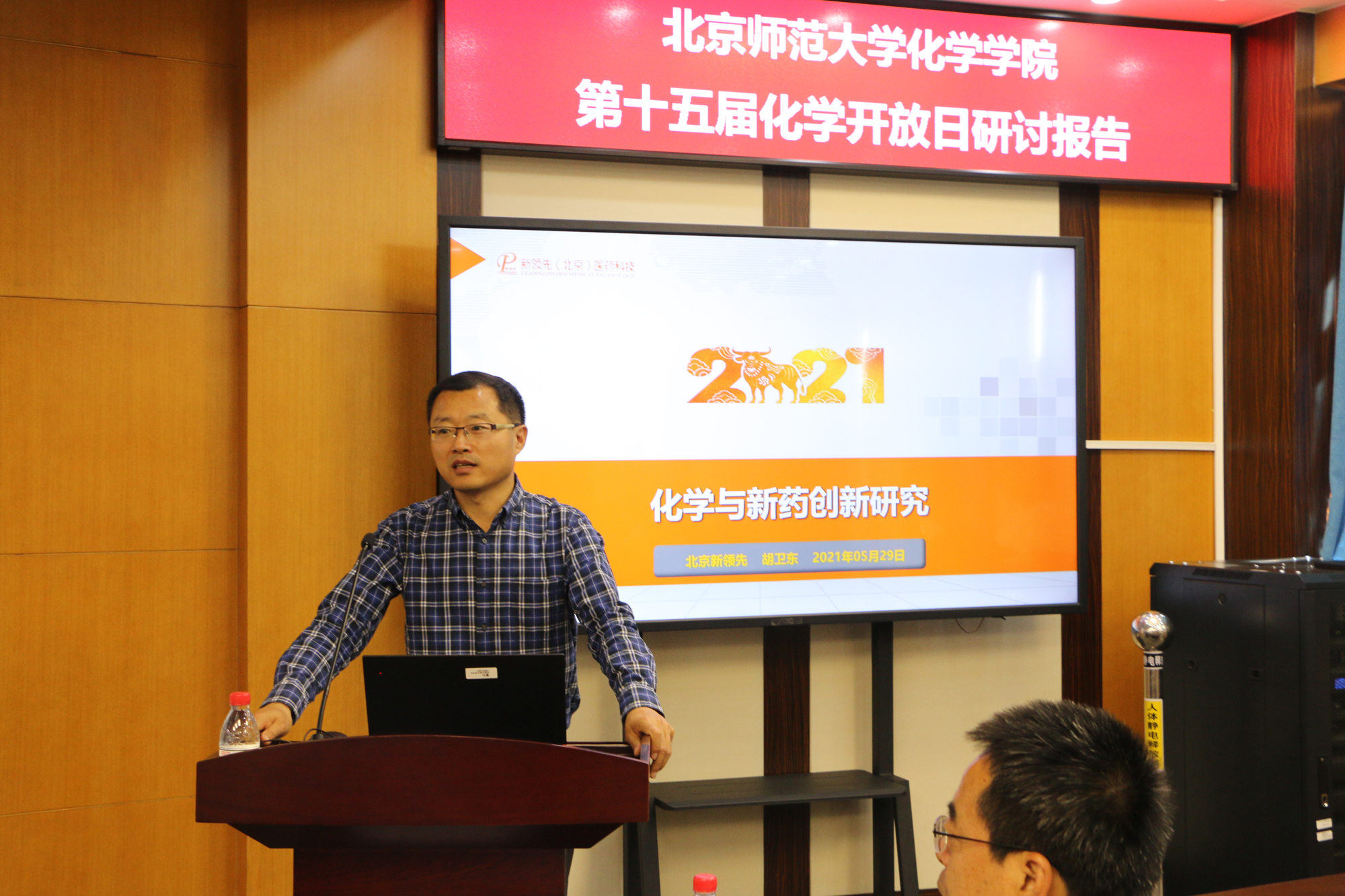 新領(lǐng)先醫(yī)藥雜質(zhì)研究事業(yè)部總經(jīng)理胡衛(wèi)東博士作題為《化學(xué)與創(chuàng)新藥物研究》的主題報(bào)告,向同學(xué)們深入介紹化學(xué)與藥學(xué)的關(guān)系、藥物研發(fā)行業(yè)的發(fā)展以及化藥創(chuàng)新研究策略等。隨后,胡博士耐心地回答了同學(xué)們的問(wèn)題,現(xiàn)場(chǎng)氣氛活躍。