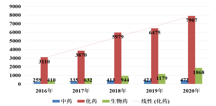 2、在國家新藥創(chuàng)新政策鼓勵下,以及資本的高度關(guān)注支持下,創(chuàng)新藥數(shù)量增長顯著。 其中,生物類新藥增長尤為矚目,是1類創(chuàng)新藥中的熱點;