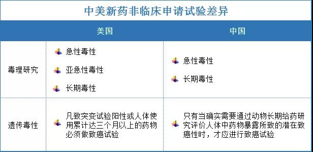 為申請(qǐng)臨床研究而做的非臨床研究中,中國(guó)一般包括藥理學(xué)、主要藥效學(xué)和藥代動(dòng)力學(xué)。而美國(guó)對(duì)動(dòng)物研究方面比中國(guó)要寬。在毒理學(xué)研究方面,中國(guó)規(guī)定做急性毒性和長(zhǎng)期毒性試驗(yàn),而美國(guó)則做急性、亞急性和慢性三種9全身毒性試驗(yàn)。對(duì)于遺傳毒性,中國(guó)要求只有當(dāng)確實(shí)需要通過(guò)動(dòng)物長(zhǎng)期給藥研究評(píng)價(jià)人體中藥物暴露所致的潛在致癌性時(shí),才應(yīng)進(jìn)行致癌試驗(yàn)[9]。美國(guó)則要求,凡致突變?cè)囼?yàn)陽(yáng)性或人體使用累計(jì)達(dá)三個(gè)月以上的藥物必須做致癌試驗(yàn)。