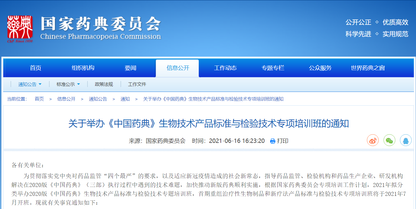 關(guān)于舉辦《中國(guó)藥典》生物技術(shù)產(chǎn)品標(biāo)準(zhǔn)與檢驗(yàn)技術(shù)專項(xiàng)培訓(xùn)班的通知