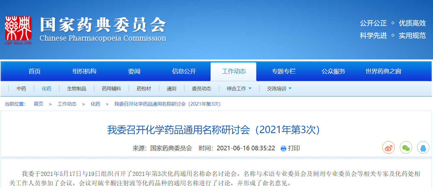 我委召開化學(xué)藥品通用名稱研討會(huì)(2021年第3次)