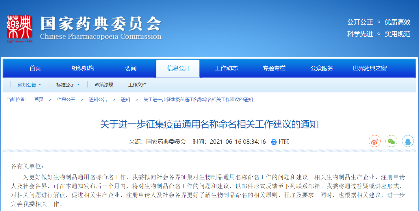 關(guān)于進(jìn)一步征集疫苗通用名稱命名相關(guān)工作建議的通知