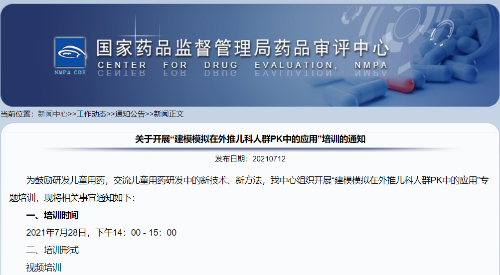 關(guān)于開展“建模模擬在外推兒科人群PK中的應(yīng)用”培訓(xùn)的通知