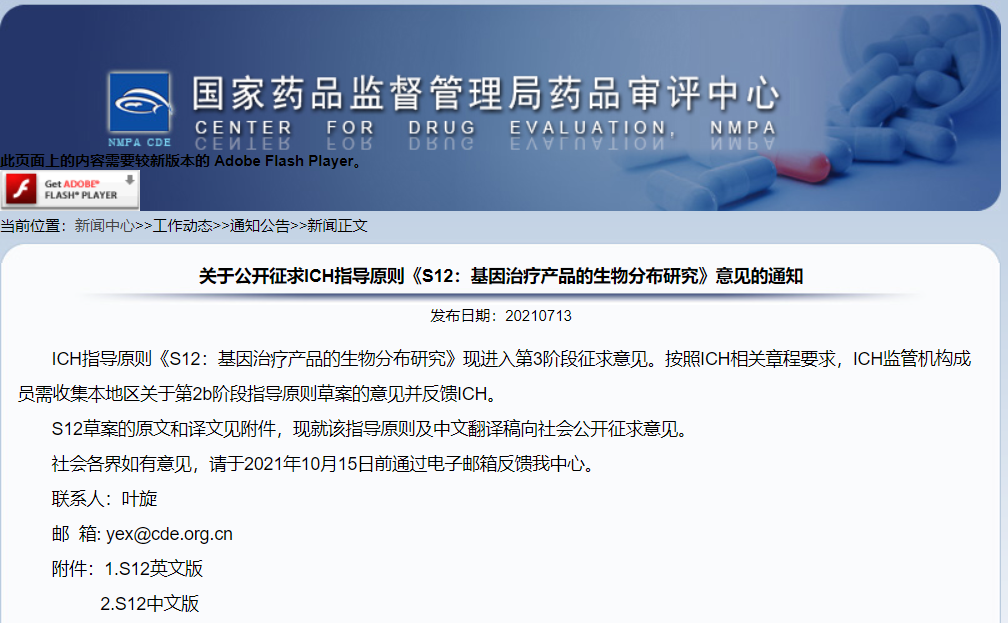 關(guān)于公開征求ICH指導(dǎo)原則《S12:基因治療產(chǎn)品的生物分布研究》意見的通知