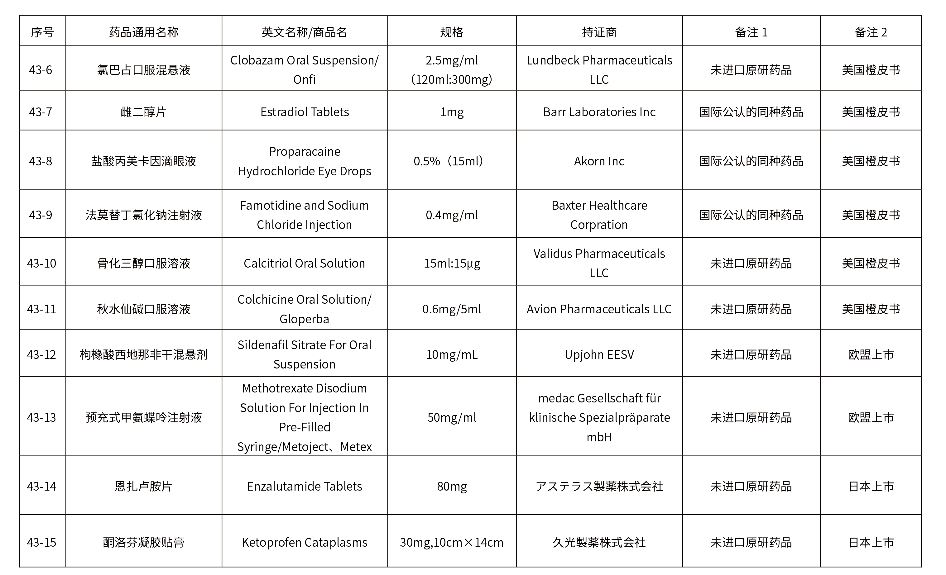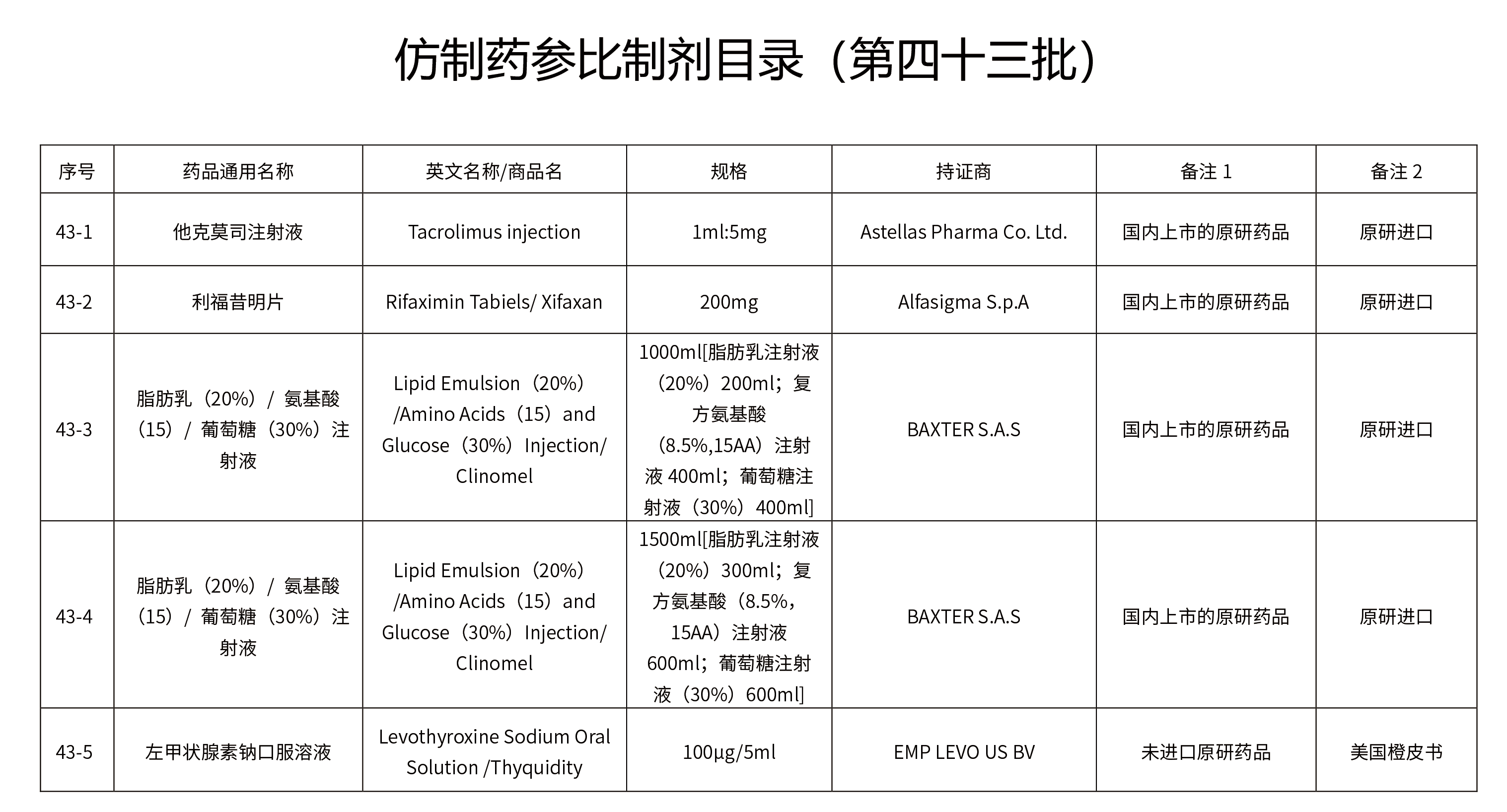 國(guó)家藥監(jiān)局關(guān)于發(fā)布仿制藥參比制劑目錄(第四十三批)的通告(2021年第51號(hào))