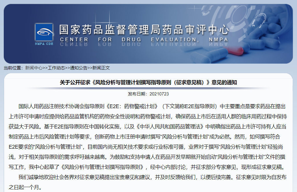 關(guān)于公開征求《風(fēng)險(xiǎn)分析與管理計(jì)劃撰寫指導(dǎo)原則(征求意見稿)》意見的通知