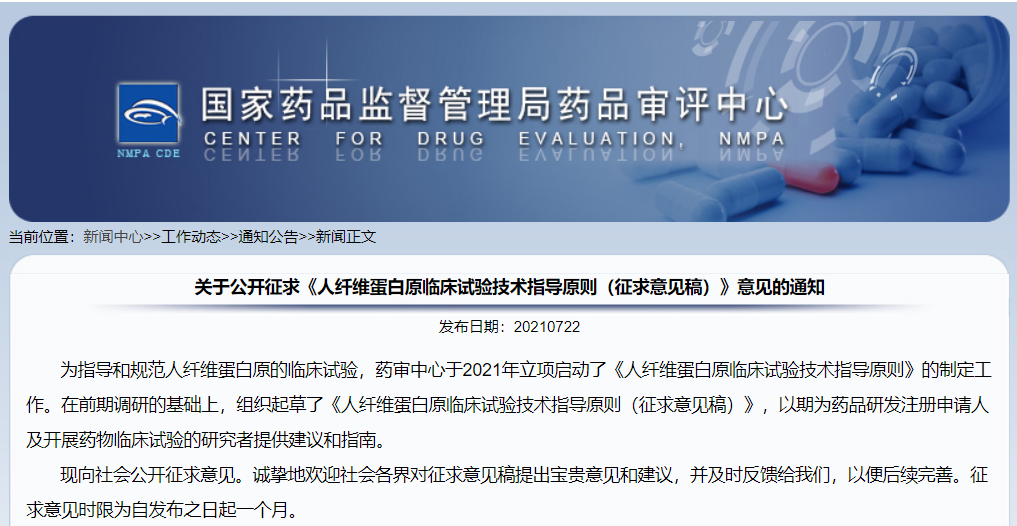 關(guān)于公開征求《人纖維蛋白原臨床試驗(yàn)技術(shù)指導(dǎo)原則(征求意見稿)》意見的通知