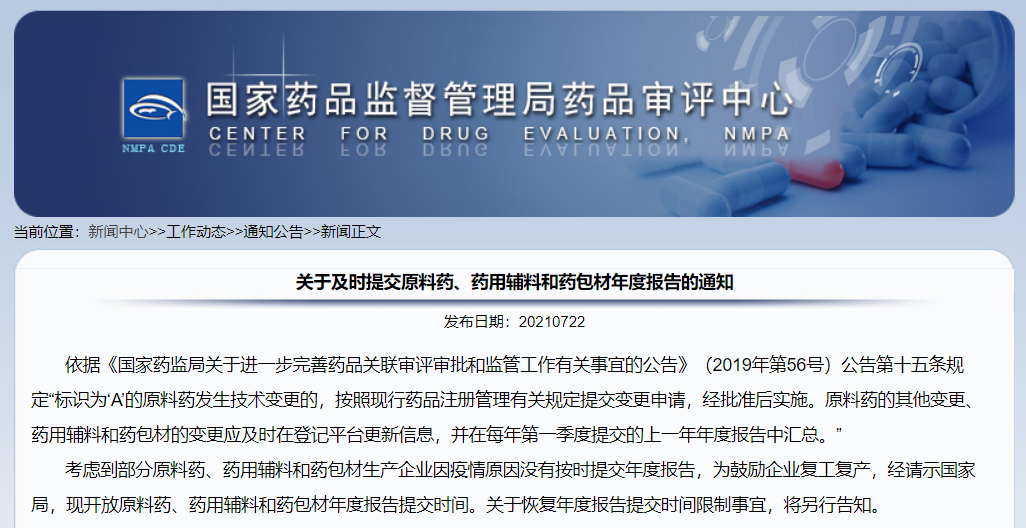 關(guān)于及時(shí)提交原料藥、藥用輔料和藥包材年度報(bào)告的通知