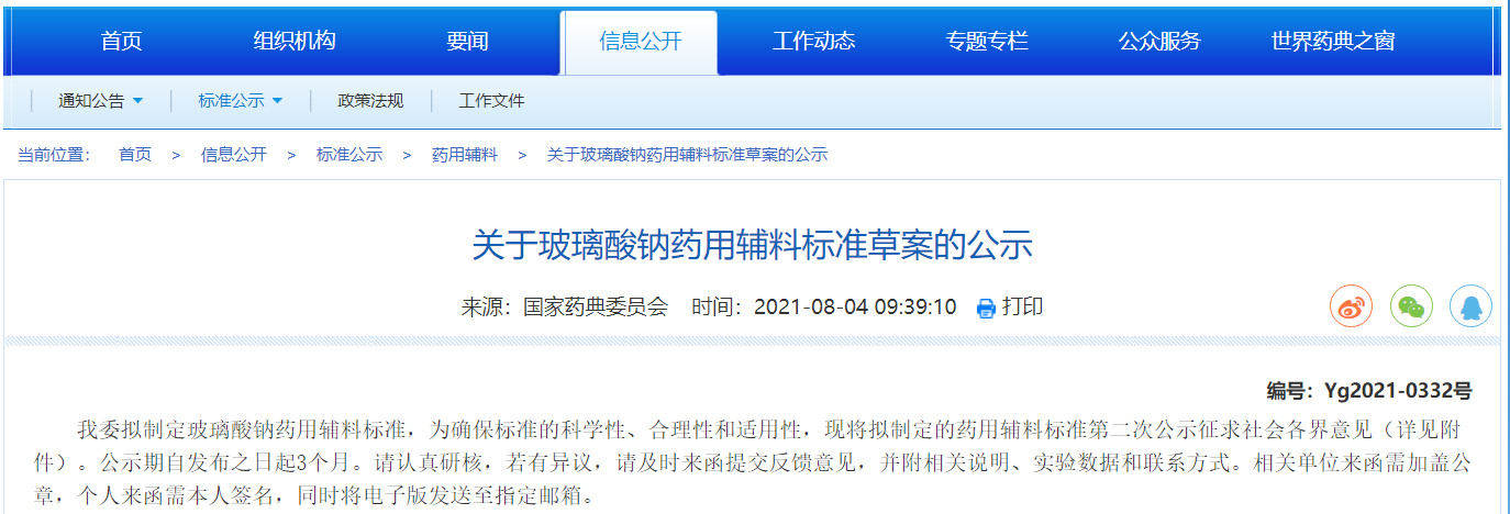 關(guān)于玻璃酸鈉藥用輔料標(biāo)準(zhǔn)草案的公示