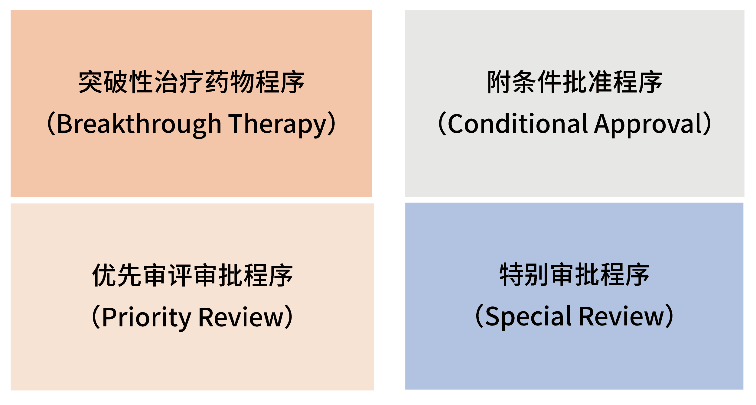 特別明確的支持以臨床價(jià)值為導(dǎo)向的藥物創(chuàng)新,為鼓勵(lì)真正的創(chuàng)新, 針對(duì)不同的申報(bào)階段給與相應(yīng)的政策和技術(shù)支持,例如技術(shù)指導(dǎo)、溝通交流,優(yōu)先配置資源,縮短審評(píng)時(shí)限,溝通交流后補(bǔ)充提交技術(shù)資料等,制定了4種給予政策優(yōu)惠的藥品審評(píng)審批程序: